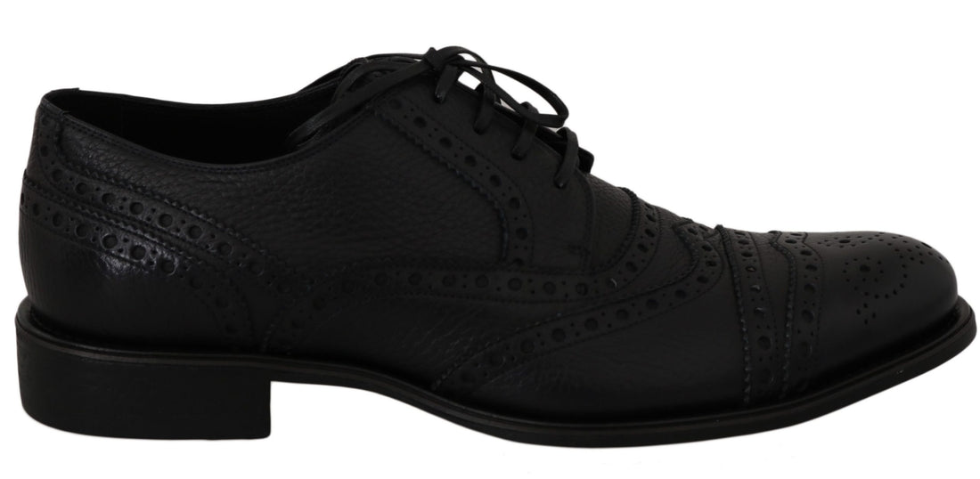 Dark Blue Leather Wingtip Oxford Dress Shoes