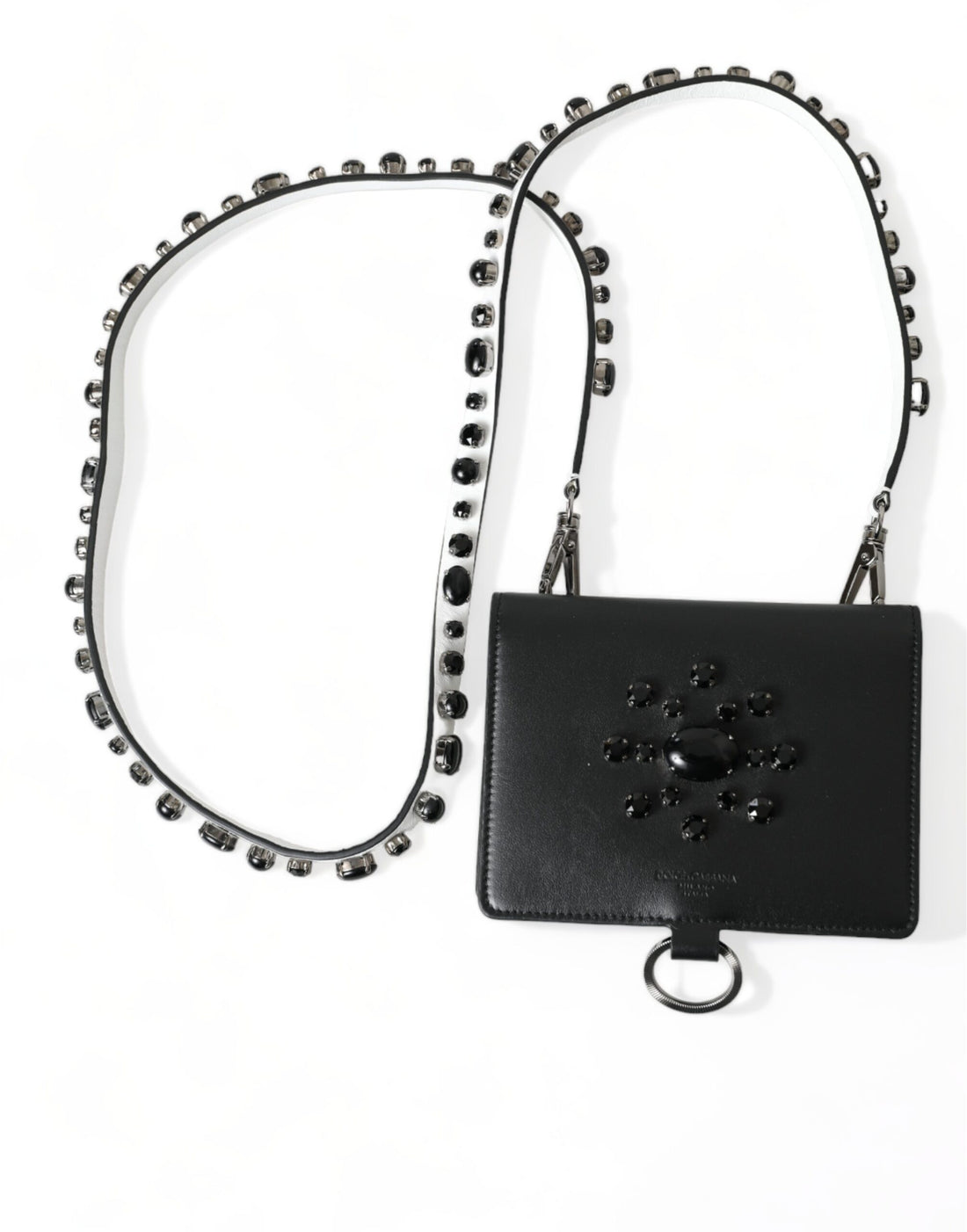 Black Leather Crystal Embellished Card Holder Wallet