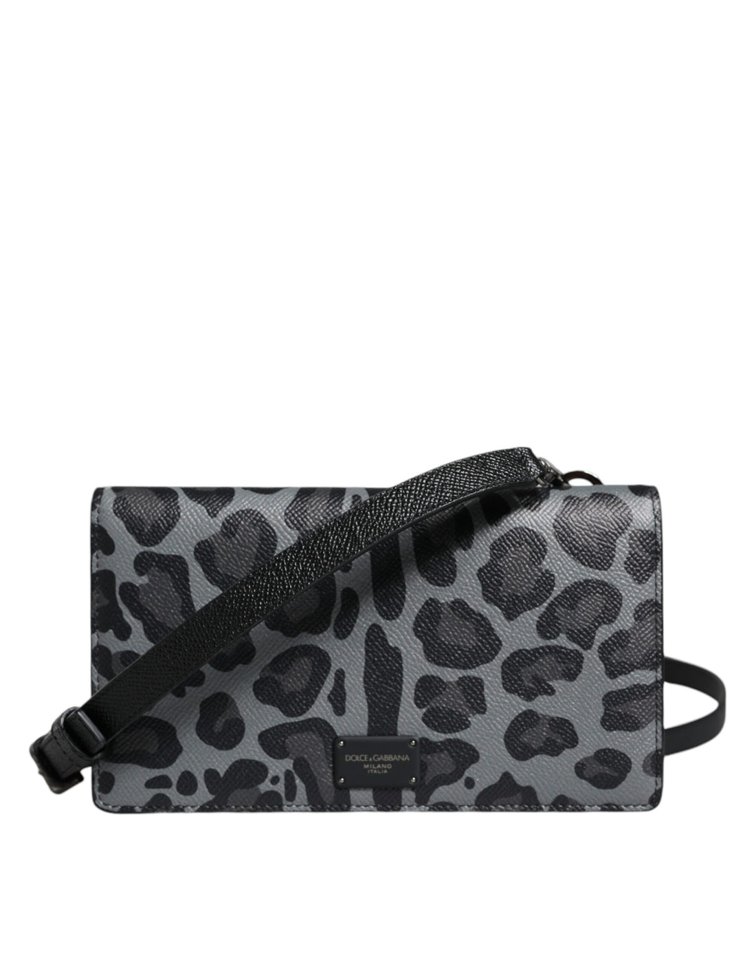 Black Gray Leopard Leather Bifold Card Slot Crossbody Bag