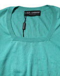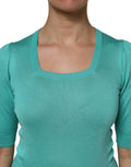 Aqua Blue Silk Short Sleeves Square Neck Top