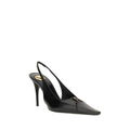 Saint Laurent’s leather Babylone Pumps express bold and sophisticated femininity. Featuring an elongated toe with elegant cut-out details, they are embellished with the iconic YSL metallic element applied to the front. The elasticized slingback strap ensures a comfortable fit, while the leather stiletto heel slims the silhouette with class. The branded insole completes the model with a distinctive touch.