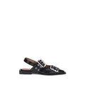 Ganni’s Ballerinas combine elegance and practicality with a modern design. Featuring a pointed toe, they feature straps with an adjustable back strap, two silver-colored buckles with eyelets, and black square block heels for a sophisticated and comfortable look.