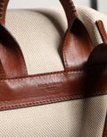 Beige Brown Canvas Leather EDGE Travel Men Back Pack Bag