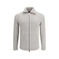The cashmere mouliné Sweater with full zip combines comfort and refinement in perfect balance. The mouliné knit adds depth and character to the texture, while the two-way zip and leather puller introduce a functional yet sophisticated detail. Its regular fit and front pockets make it a versatile piece, ideal for relaxed, everyday styling. A design that embodies effortless elegance and modern ease.