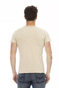 Indulge in the epitome of contemporary cool with Trussardi Action’s sleek Beige T-shirt, a true testament to bold street sophistication. The shirt’s striking front print serves as a statement of style, demanding attention while exuding understated elegance. Embrace the fusion of comfort and cutting-edge fashion with its premium cotton-viscose blend, an investment in your sartorial arsenal that pays off with every wear.