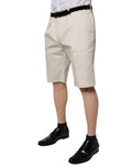 Beige Cotton Stretch Mid Waist Bermuda Shorts