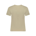 Elevate your wardrobe with the effortlessly chic Guess Jeans tee, a perfect blend of comfort and signature style. This beige t-shirt features a flattering wide neck and is adorned with a standout logo application, ensuring you shine in casual luxury. Crafted from a sumptuous mix of organic cotton and a hint of spandex, this piece offers both sustainability and a touch of stretch for an ideal fit. Embrace the bold and trendy spirit of Guess Jeans with this stylish staple.