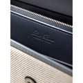 Beige Canvas and Loro Piana Leather Wallet. Covered snap button opening, two compartments, card holders, and internal zip pocket.