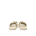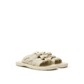 Bottega Veneta Beige Elastic Woven Rubber Slipper Sandals. In sand beige, rounded rubber sole, tone-on-tone elastic weave.