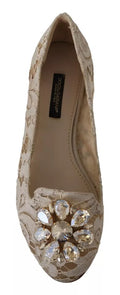 Beige Lace Crystal Ballet Flats Loafers Shoes