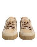 Beige Leather Low Top Lace Up Sneakers Shoes