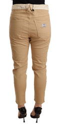 Beige Mid Waist Slim Fit Skinny Stretch Trouser