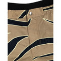 Bottega Veneta Animal Print Swim Boxer. Beige/navy blue nylon boxer shorts, elastic waist, snap button and covered zip closure, two side pockets, internal mesh.