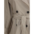 The Trench Coat with Monili decoration by Brunello Cucinelli is a sophisticated and sophisticated garment, offered in a refined chocolate hue. Made in a double-breasted model with button closure and waist belt, it is embellished with the iconic Monili beaded decoration that adds light and character. Completing the design are two side flap pockets and a unlined construction, enhancing its lightness and natural elegance.