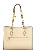 Elevate your style quotient with the Guess Jeans fashion-forward handbag! Perfect for the modern trendsetter, this piece boasts striking beige polyethylene, designed to turn heads. The handbag features two chic chain shoulder handles for a touch of elegance, complemented by contrasting details that add a pop of sophistication. Stay organized and ready for any occasion with two exterior pockets along with one interior pocket, and dedicated internal spaces for your documents—all secured with a sleek zip closure. Adorned with the iconic Guess Jeans logo, this accessory is not just a bag, but a statement.