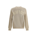 Beige ribbed-knit sweater by Golden Goose combines comfort and style. The crewneck and long sleeves provide a versatile fit, while the printed logo on the back adds a distinctive detail that makes the piece instantly recognizable. Perfect for casual-chic outfits or layered with more sophisticated pieces