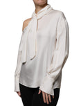 Beige Silk Ascot Collared Long Sleeves Top