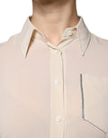 Beige Silk Blend Collared Button Down Top