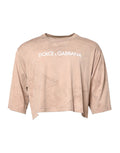 Beige Tie Dye Logo Print Cropped T-shirt