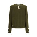 The Bobby Cardigan by Baziszt is a distinctive piece that combines elegance with playful charm. It features a button-front closure, a mandarin collar, and two slanted pockets. Two embroidered dog figures adorn the front, while a bone motif decorates the upper back and one sleeve. An original and refined cardigan that embodies the brand’s creative spirit.