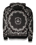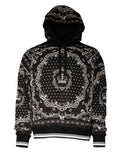 Black Bandana Print Crown Logo Cotton Hoodie Sweater