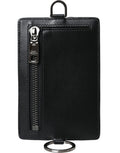 Black Calf Leather Lanyard Logo Card Holder Men Wallet