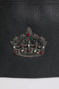 Black Calfskin Crown Embellished Clutch Pouch Bag