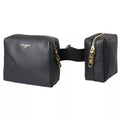 Black Calfskin Leather Double Waist Belt Fanny Pack Bag