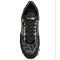 Dolce & Gabbana sneakers in suede and fabric with black and grey leopard print, patent leather heel counter and yellow embroidered logo, two-tone rubber sole