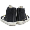 Golden Goose high-top sneakers in canvas and calfskin, black cotton canvas with contrasting yellow laces, white leather star logo, side zip for opening, rubber sole with used effect