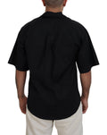 Black Cotton Collared Logo Print Short Sleeve Shirt