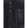 The Layered Jacket by Balenciaga redefines layering with a modern twist. The front panel is crafted in denim, while the back and hood are made of soft sweatshirt fabric for a relaxed contrast. It features a classic collar, button-front closure, two welt pockets, and two chest patch pockets. The Balenciaga logo emblazoned across the back adds a signature finishing touch.