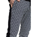 Elevate your off-duty repertoire with the Balmain cotton sweatpants, where casual meets couture. These pants feature a stark white-on-black Greek pattern print that stands out with audacity, while their drawstring and elasticated waist ensure superior comfort. Practical yet stylish, they come with two side pockets and an additional one at the back for functionality. Fashion-forward individuals will appreciate the blend of luxury and leisure that Balmain delivers with every stitch from Italy.