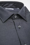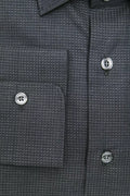 Infuse your wardrobe with the sleek sophistication of a Robert Friedman creation. This Medium Slim Collar Shirt is the epitome of refined style, tailored to perfection for the modern man. Crafted from luxurious materials with a likeness to cotton, it boasts a crisp, black hue that exudes an air of class and timelessness. Whether dressed up for a formal event or styled down for a smart-casual look, this shirt is a testament to impeccable taste.