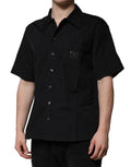 Black Cotton Short Sleeve Buttoned Casual Shirt