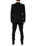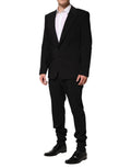 Gorgeous brand new, 100% Authentic Dolce & Gabbana black, two pieces suit is crafted from a cotton blend and features a jacket with a peak lapel, long sleeves, a chest pocket, side flap pockets and button cuffs. The trousers feature a mid rise, a button and zip fly, a waistband with belt loops, side pockets, back pockets and a regular length.