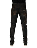 Gorgeous brand new, 100% Authentic Dolce & Gabbana jeans add an edgy, contemporary vibe to your wardrobe. Crafted from premium black cotton denim with a hint of stretch, they feature a sleek skinny fit and artfully tattered details for a modern, worn-in look. Perfect for casual days or night-out styling, they pair effortlessly with everything from sneakers to boots.