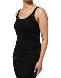 women’s tank top is crafted from soft black cotton for a comfortable and breathable fit. Designed with a sleeveless cut and classic round neckline, it offers a sleek and versatile silhouette that’s perfect for layering or wearing on its own. A timeless wardrobe essential with effortless style.