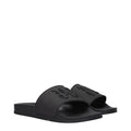 The product with MPN PMIC010PLA0011010 and code F84873 rubber in black is a slippers and clogs designed by Palm Angels. It has features like front logo.