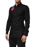Gorgeous brand new, 100% Authentic Dolce & Gabbana black dress shirt for men. Crafted from 100% cotton, this slim fit shirt features a standout embroidered and sequin star patch on the chest and “LOVE” chenille-text detail on the collar. A perfect blend of luxury tailoring and artistic flair.