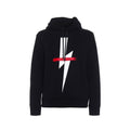 – Composition: 100% cotton – lightning bolt print and red paint-effect relief stripe – drawstring hood – ribbed trims – front flash printed – machine wash – Made in Italy –