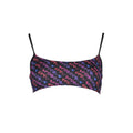 bandeau swimsuit, lined interior, removable padding, lacing at the neck, clip closure, contrasting details, logo