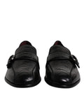 Black Exotic Leather DG Logo Loafers Formal Dress Shoes