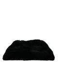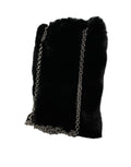 Black Faux Fur Silver Chain Crossbody Shoulder Purse Bag