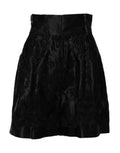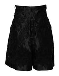 Black Floral Embroidery Silk High Waist Shorts