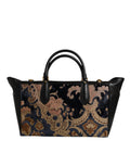Black Floral Jacquard Handbag Shoulder Tote Bag