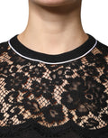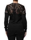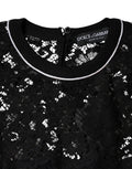 Black Floral Lace Silk Pullover Blouse Top