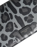 Black Gray Leopard Leather Bifold Card Slot Crossbody Bag
