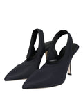 Black Jersey Stretch Heels Slingback Shoes