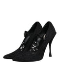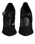 Black Lace Crystals Mary Jane Pumps Shoes